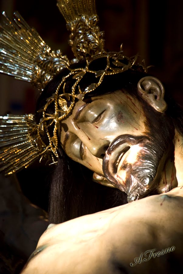 Recuerdo, Padre Mío, el caminar poderoso de tu cuadrilla avanzando por María Auxiliadora, y glorificando la madrugada del Viernes Santo, con tu barrio poblando la plaza de sus mayores y la esencia talegona mezclando sus aromas con el azahar de los naranjos. Y recuerdo una marcha empapando nuestras entrañas con el deseo irrealizable de sanar tus heridas... ¿Cuántas veces he rememorado aquél instante imposible de repetir?. ¿Cuántas he soñado con tu imaginero, con las manos que tallaron tu figura y me he preguntado en qué lugar de su espíritu habitaba la semilla de la fe que te engendró?. ¿De qué fuente de la otra orilla del océano manaba el agua del altar de sus devociones? ¿Plasmó en Tí el dolor de todo un pueblo que sufría su condena?