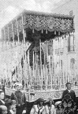 La primera titular mariana de la cofradía, obra atribuida a Cristóbal Ramos, fue también la primera en cruzar el río en compañía del Cristo de la Expiración para hacer estación de penitencia en la Catedral. Precisamente, de una de esas salidas procesionales es la fotografía que la hermandad de El Cachorro compartía hace unos días en su cuenta oficial de Twitter (@HdadCachorro), en la que podíamos ver a la actual Virgen de los Dolores en torno al año 1900 con palio, saya y manto de las hermanas Antúnez. Una hermosa imagen que años atrás contaba con una gran devoción entre los vecinos de Triana, que acudían desesperadamente a Ella en los difíciles tiempos de epidemias, como la peste que se desató a comienzos del siglo XIX.